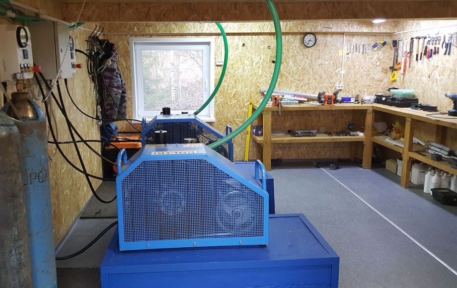 Die Gase sind Luft und Nitrox. Zusätzlich gibt es einen Kompressor beim Abstieg zum Hang, sie haben zwei Coltri-Kompressoren zur Verfügung.