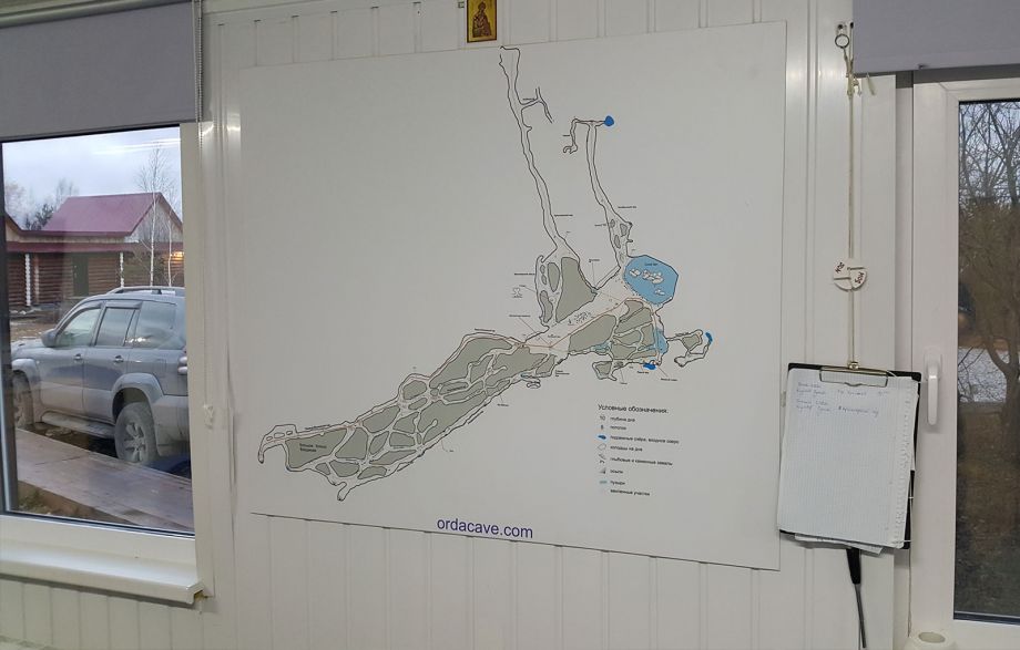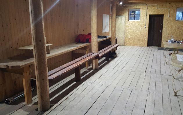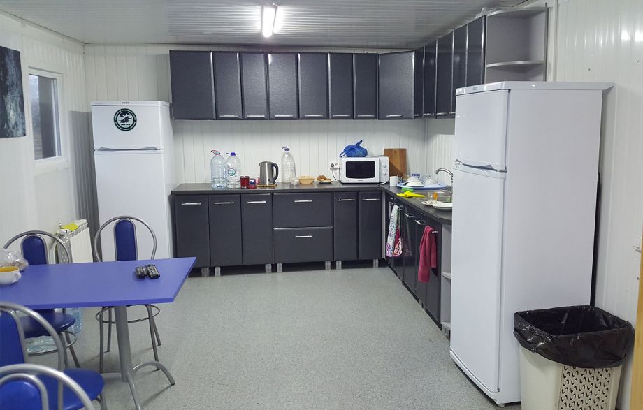 Die Basis befindet sich oberhalb der Höhle. Hier sind mehrere Holzhäuser mit einem Sanitärknoten. Jedes Cottage besteht aus 2 separaten Doppelzimmern. Die Zimmer verfügen über Bettwäsche, Handtücher werden gestellt. Die Räume sind beheizt und es ist auch bei sehr frostigem Frost warm. In der Einrichtung können 20 Personen gleichzeitig untergebracht werden.